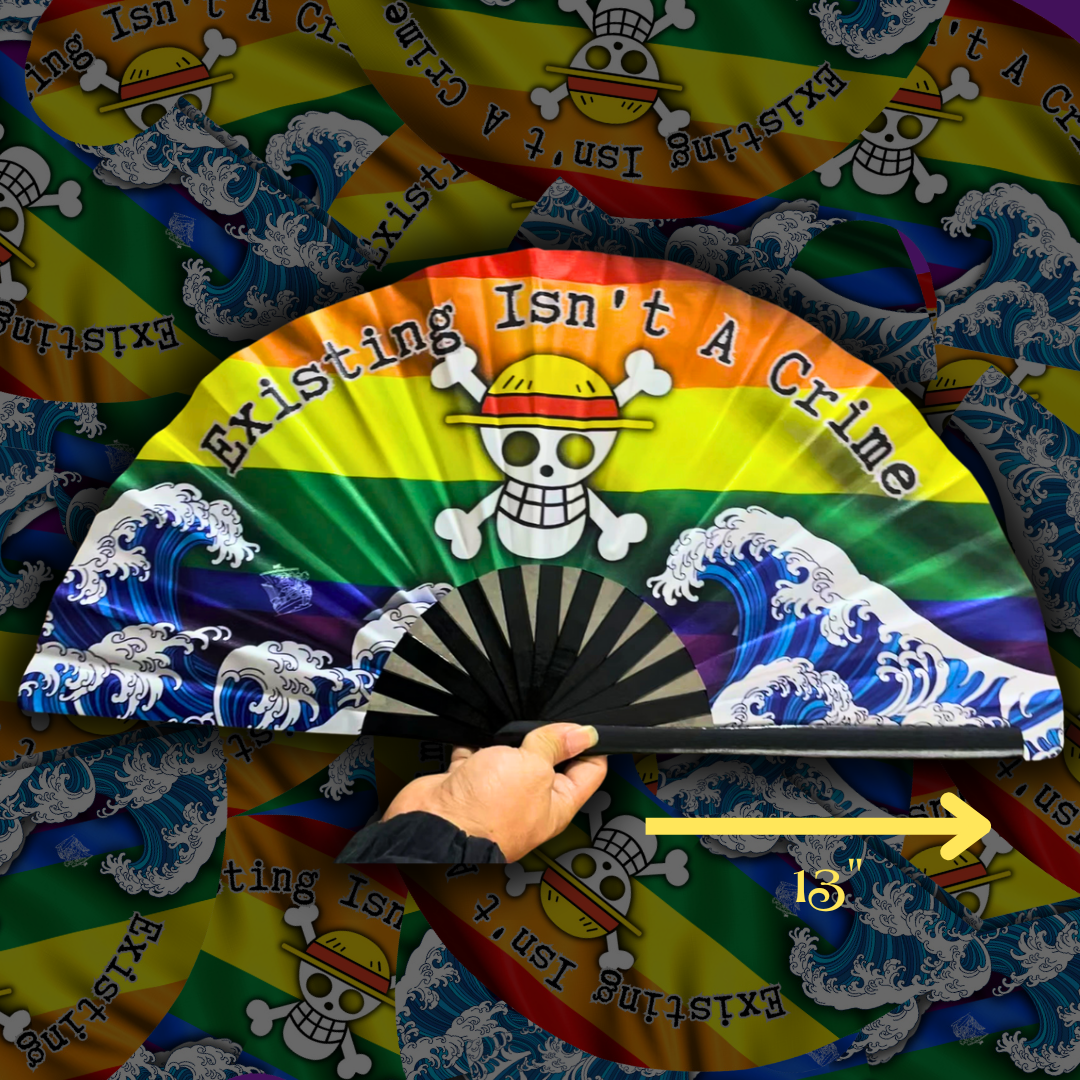 Sail with style and stay cool with our Pirate Pride 13" Silk and Bamboo Fan. Featuring a "One Piece" quote from Frankie, this fan is perfect for any pirate adventure. With its durable silk and bamboo construction, you'll never feel like a criminal for existing. (But you will look cool doing it!)