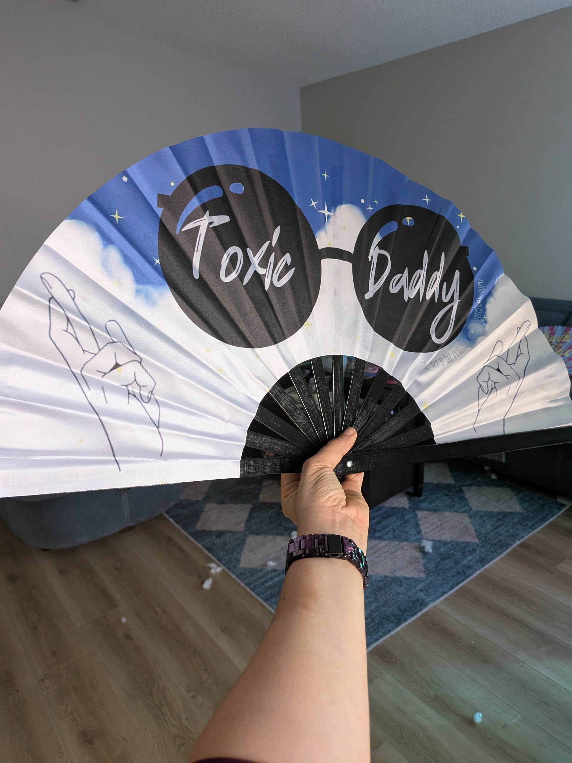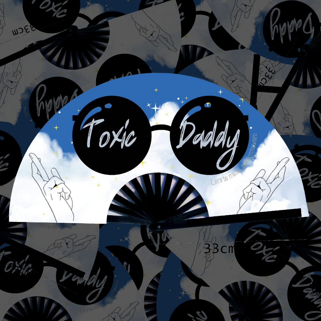 Unleash your inner risk-taker with the Toxic Daddy JJK 13" Silk and Bamboo Fan. Featuring a bold 13" bamboo design, this handfan pays homage to the #1 toxic man in our lives, Gojo Satoru. Take on the world with style and confidence as you fan your way to adventure .